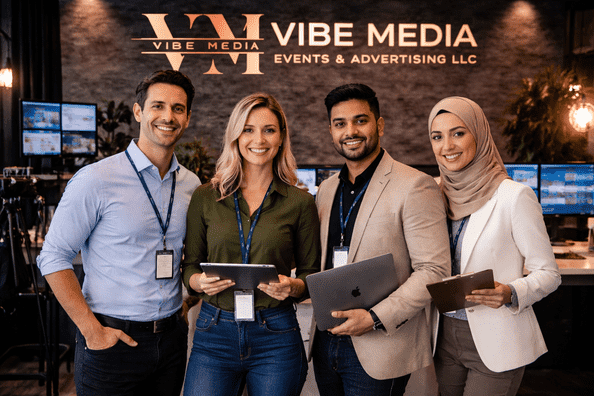 Vibe media events & advertising LLC is a Dubai-based full-service agency specializing in event technology, media production, and digital marketing. We bridge the gap between live experiences and digital presence — helping brands communicate with clarity, creativity, and impact.